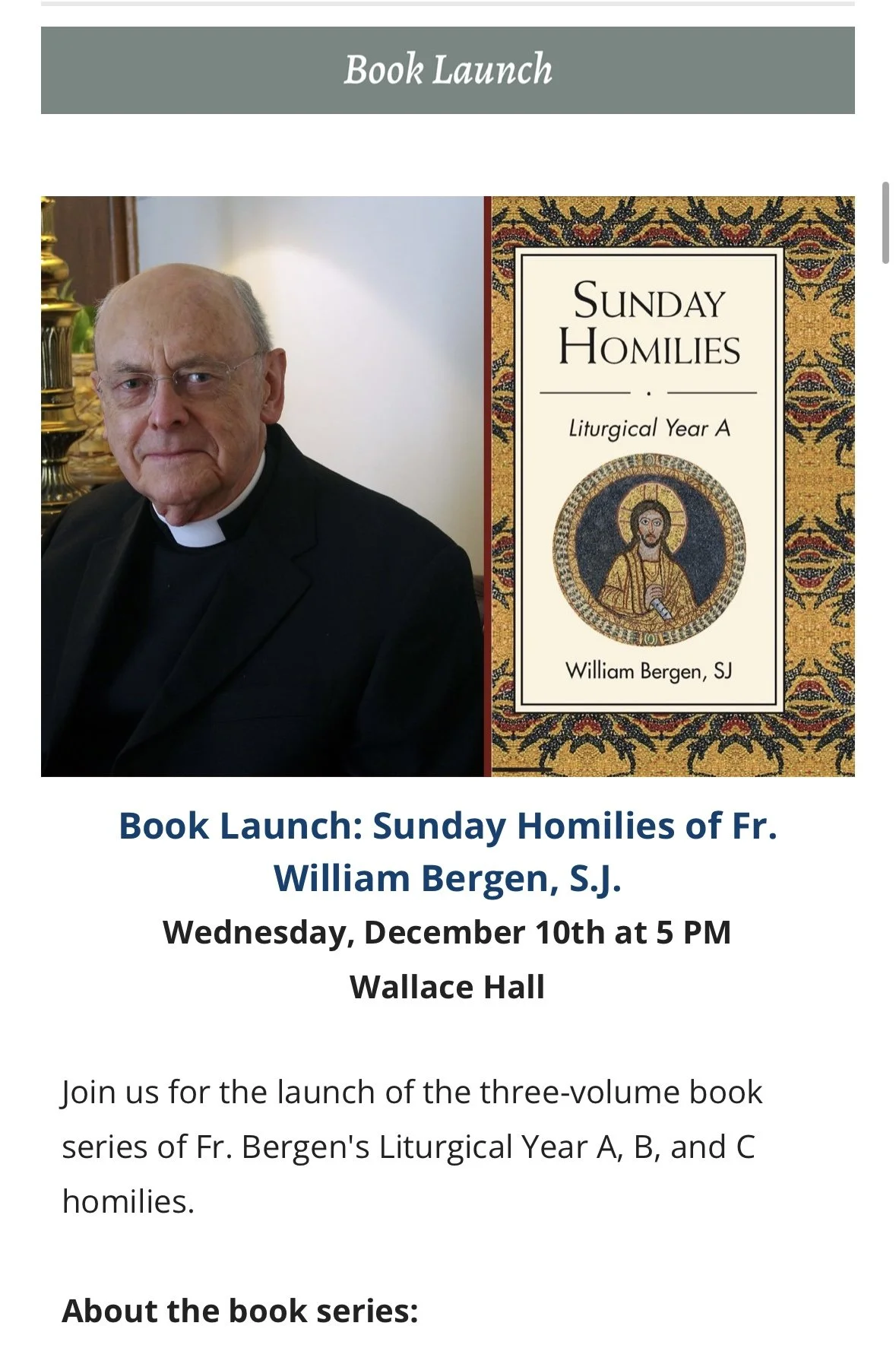 Fr. Bergen will return to St. Ignatius Loyola Church to greet parishioners and discuss his new book series, Sunday Homilies.